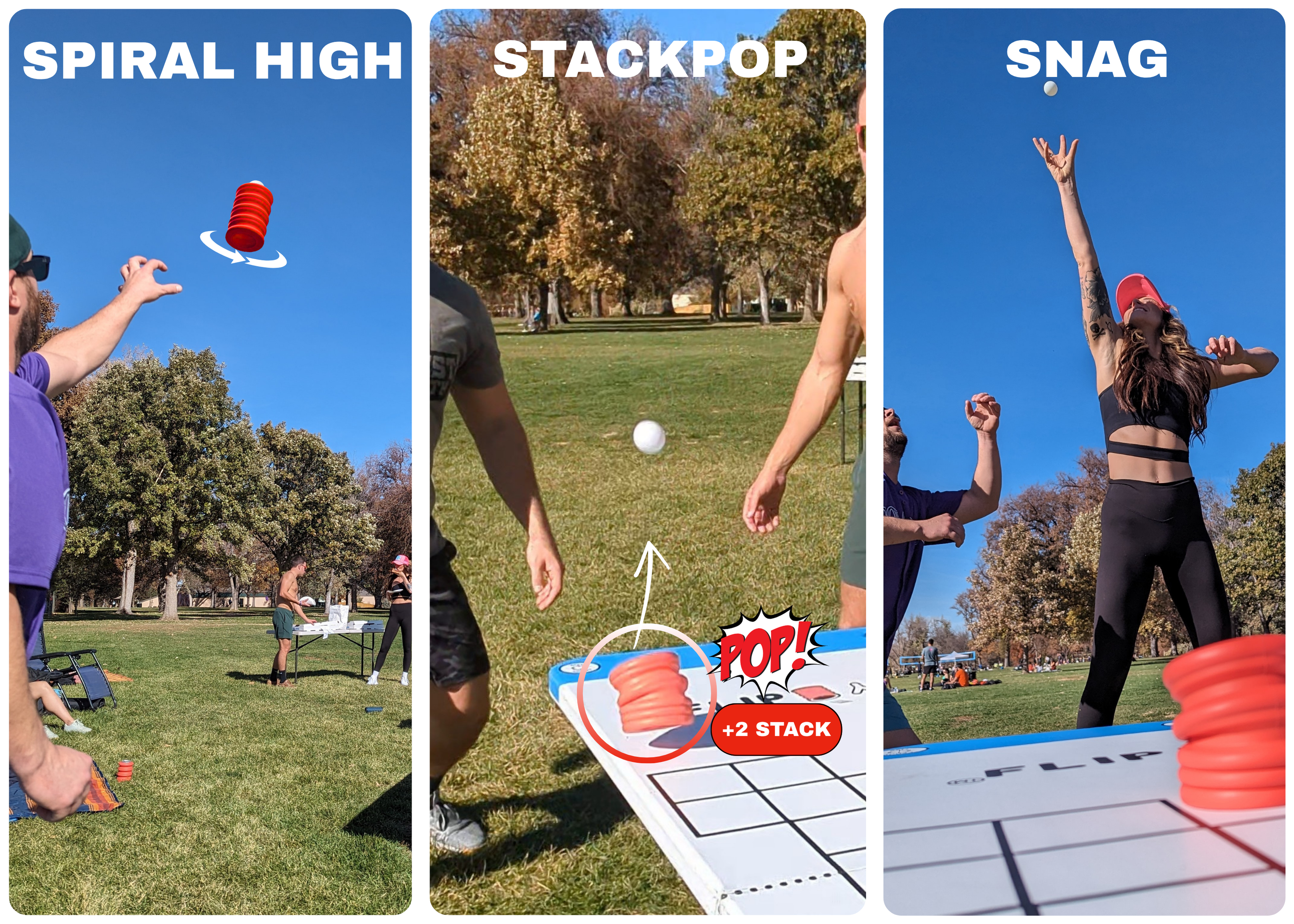 - Flips have a more random outcome and can get backwards pops - this can be very strategic in gameplay!
