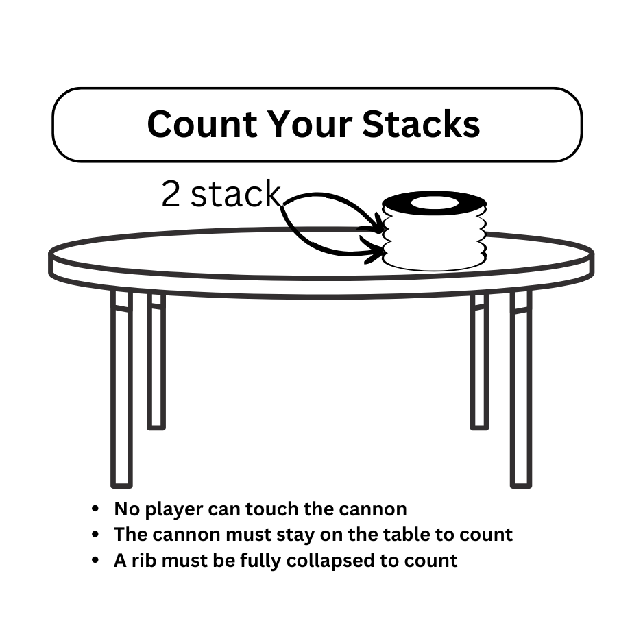 - Stack Point: +1 point for each fully collapsed rib on the cannon if it remains on the table.